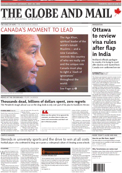 Note that Globe and Mail is Canada’s largest and most trusted newspaper. http://ismailimail.files.com/globe_and_mail_front_page_saturday_may_29_2010_released-by-im.pdf