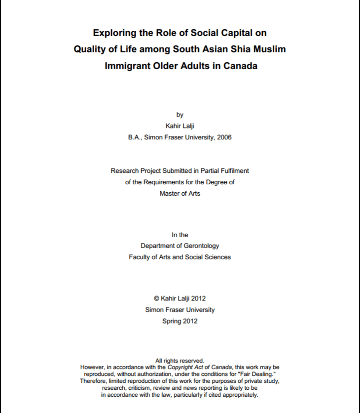 This exploratory qualitative study was conducted with eight older adults in the Shia Muslim immigrant…