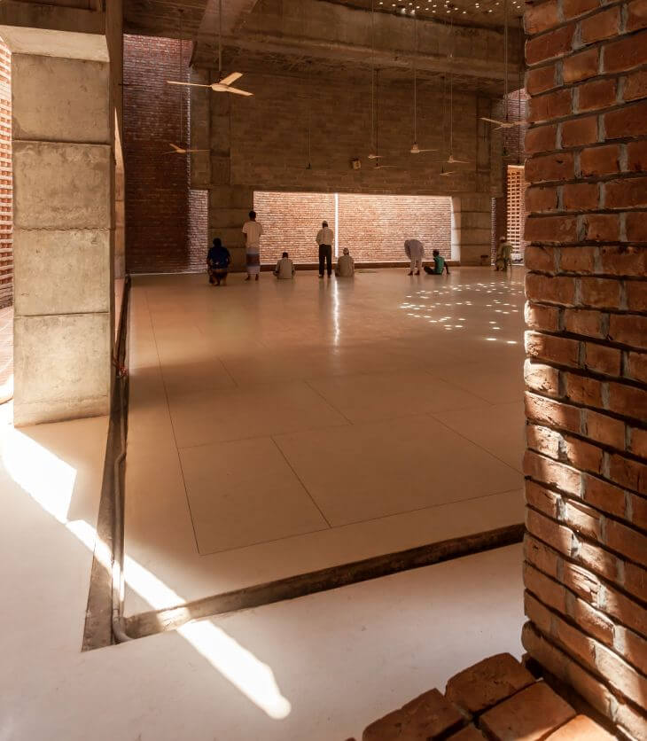In an increasingly dense neighbourhood of Dhaka, the Bait Ur Rouf Mosque was raised on a plinth on a site axis creating a 13-degree angle with the qibla direction, which called for creativity with the layout.