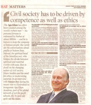 http://epaper.timesofindia.com/Repository/ml.asp?Ref=VE9JTS8yMDEzLzA5LzI5I0FyMDI2MDA%3D Posted earlier: New Interview with His Highness the Aga Khan: “Civil society has to…