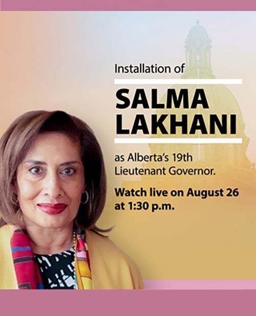 Salma Lakhani (first Muslim Lieutenant Governor in Canadian history) will be installed as Alberta’s 19th…