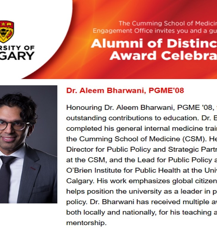 The Cumming School of Medicine member Dr. Aleem Bharwani was honoured for his outstanding contributions…